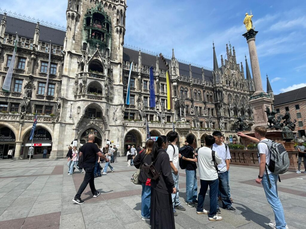 午後はミュンヘン新市庁舎や聖マリエン教会などの名所旧跡を訪れました。姉妹校生徒のレクチャーを通して、ドイツの歴史の変遷について学びました。