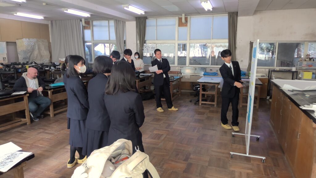 研修に参加する1年生生徒8名が、前回の研修を踏まえ修正をした完成版のポスターでの発表練習を行いました。