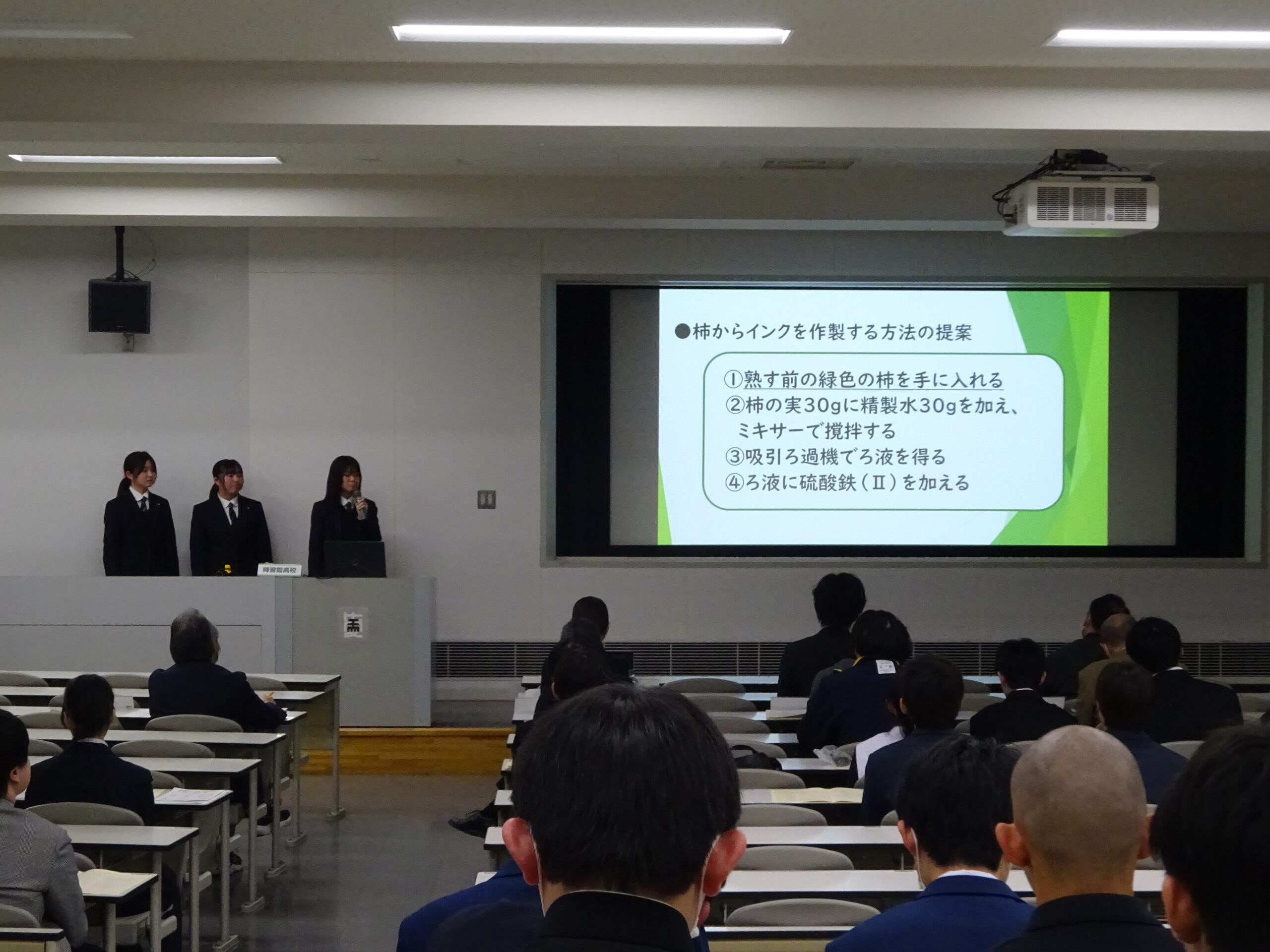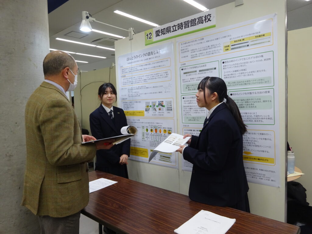 自然科学部門:自然由来の成分を使ったインクの研究(化学班2年生1名、1年生2名)