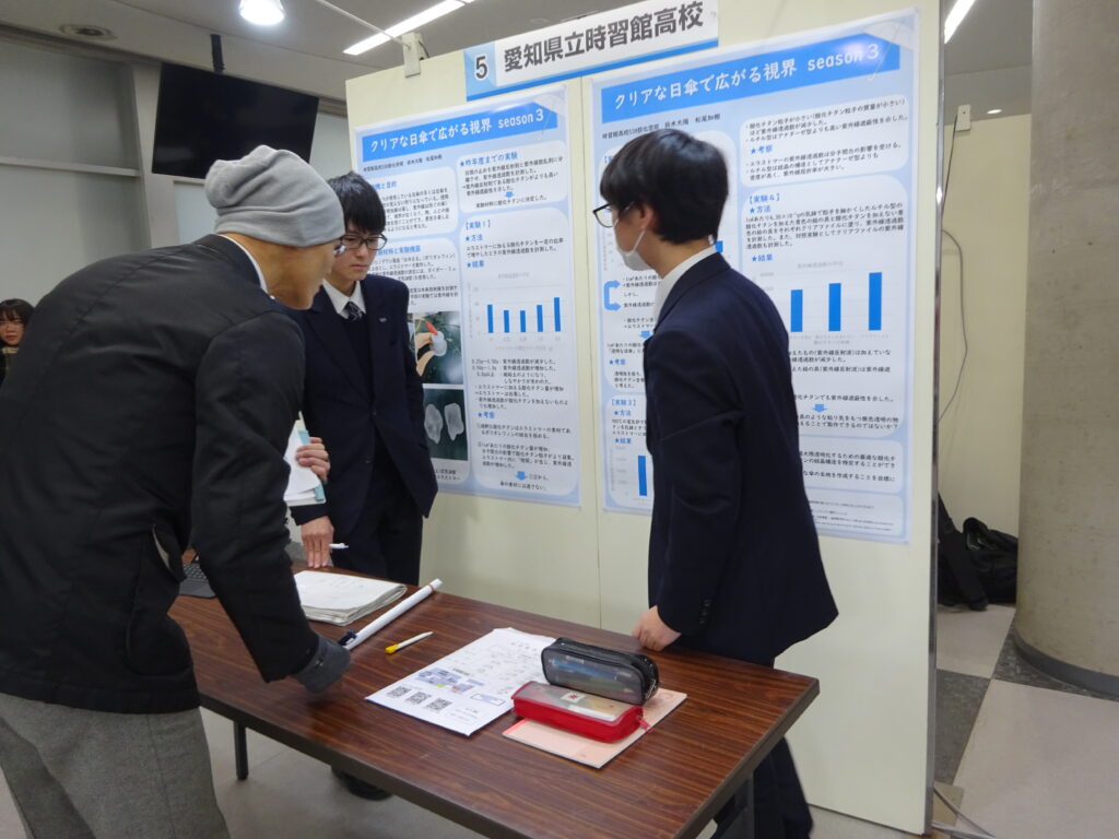 また、他校の生徒や先生方から多数の質問や意見を頂き、今後の研究の励みとなりました。